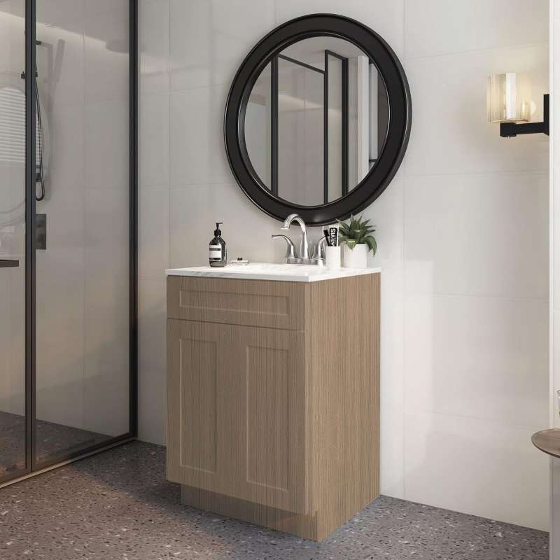 - Framed vanity sink base cabinet with (2) doors and (1) drawer front