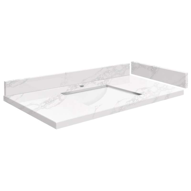 SMVT37-42.75x22-1RU-M10 Mini Custom Quartz 37-42.75-in x 22-in Vanity Top with Hensley Bowl, White Carrara