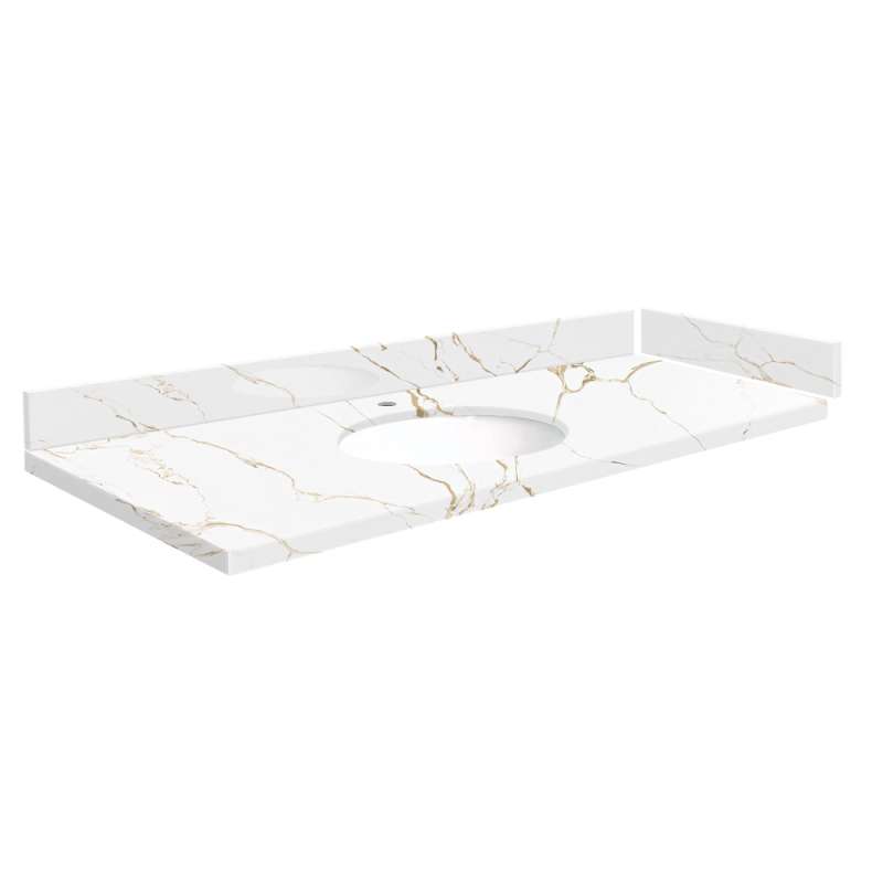 • SMVT49-60.75x22-1MU-M40 Mini Custom Quartz 49-60.75-in x 22-in Vanity Top with Millwood Bowl, Awaken Gold Awaken Gold