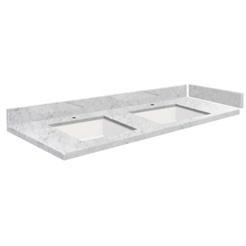• SMVT49-60.75x22-2KU-M10 Mini Custom Quartz 49-60.75-in x 22-in Vanity Top with Vail Double Bowls, White Carrara White Carrara