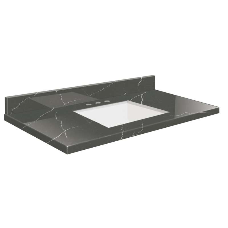 - Quartz 0.75-in (2cm) thick bathroom vanity top comes in a polished finish with an eased edge