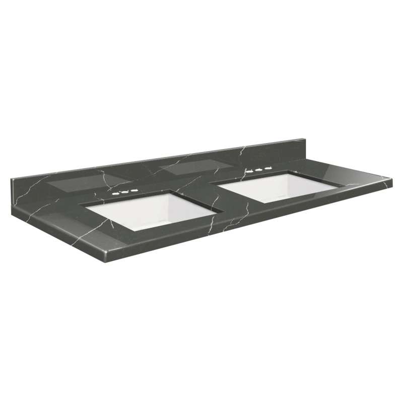 - Quartz 0.75-in (2cm) thick bathroom vanity top comes in a polished finish with an eased edge