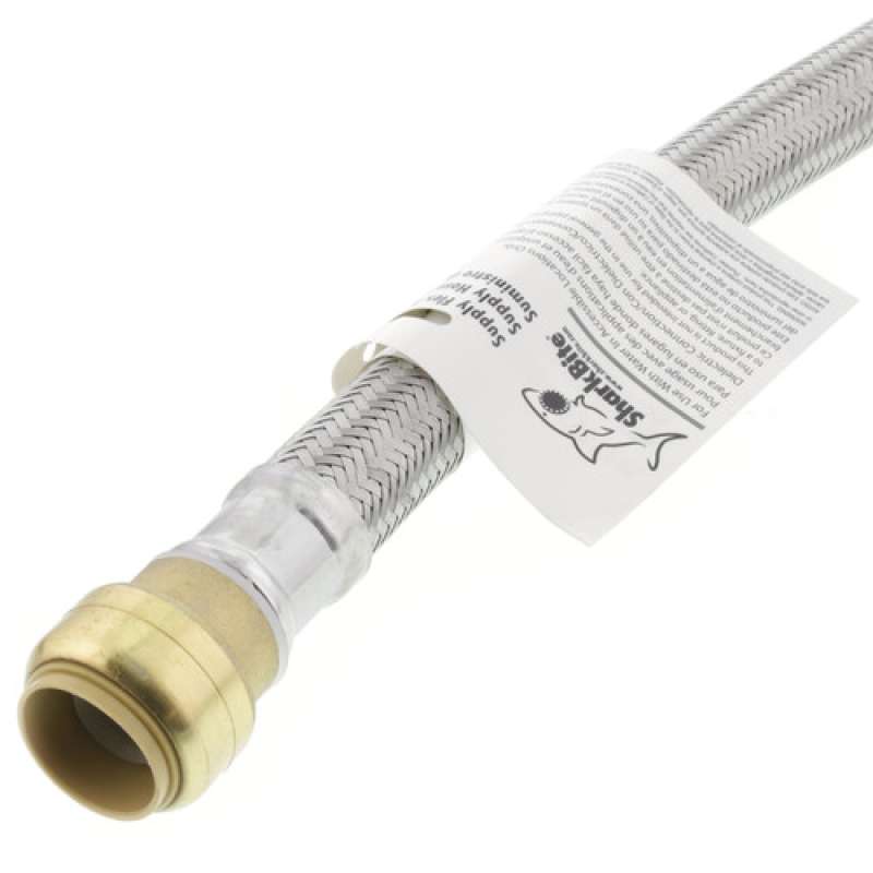 Sharkbite Flexible Coupling Hoses are used in residential and commercial applications to easily connect CTS pipe in any combination. The connectors are EPDM knitted with braided stainless steel. The hoses are available in 1/2? and 3/4?, and are 18" in length. The Sharkbite connection allows the installer to connect to Copper, PEX, CPVC and PE-RT tubing and eliminates the need for an additional transition fitting.