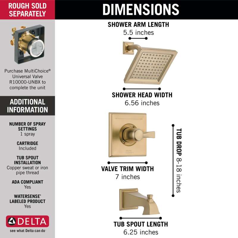 • T14451-CZ-WE Dryden Monitor 14 Series Tub & Shower Trim, Champagne Bronze Champagne Bronze