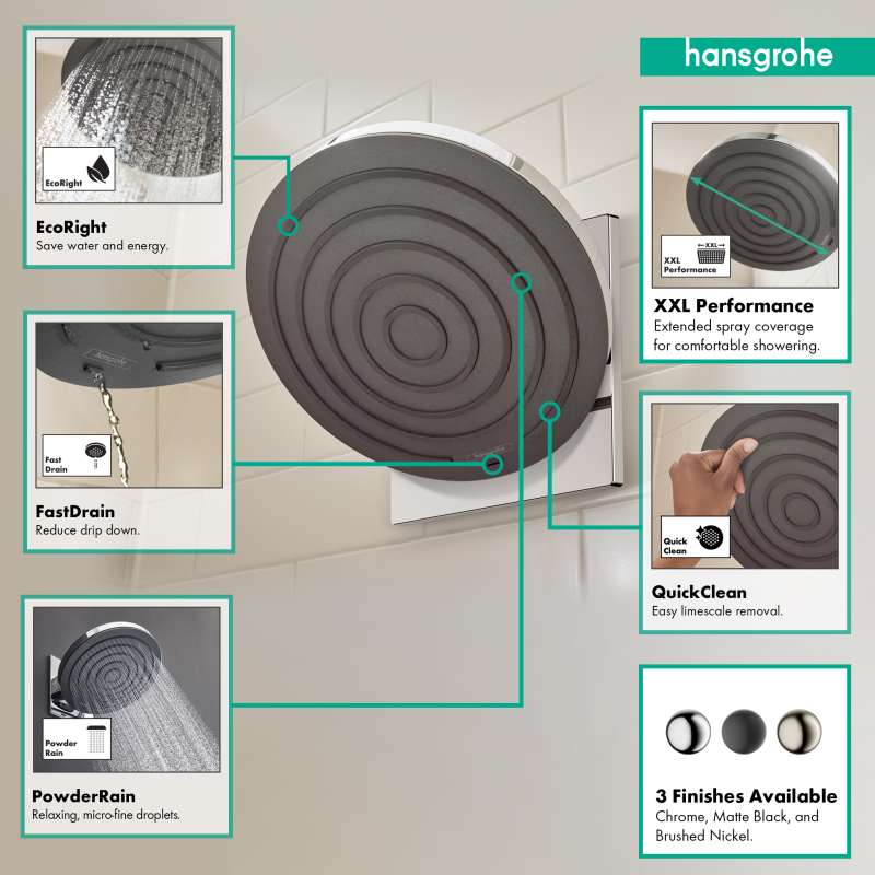 - Installation notes: Hansgrohe recommends a licensed plumber install this product