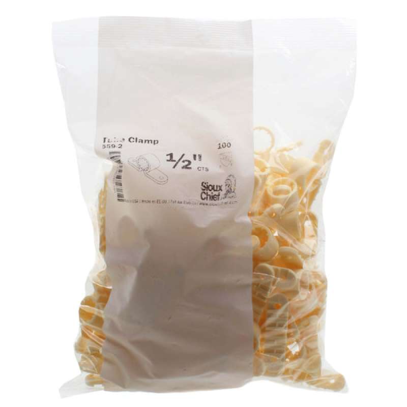 Sioux Chief 559 series tube clamp with its improved design is stronger. V-shaped notch makes it easier to snap onto tube. Safe working load on 15 lbs. Compatible with copper, PEX or CPVC.