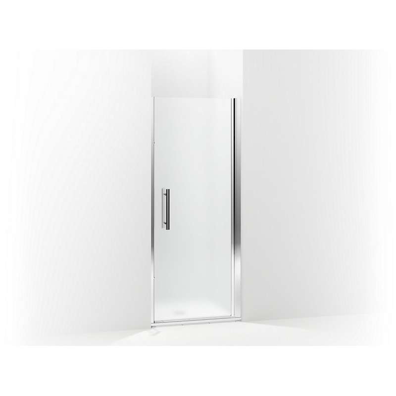 The Finesse Peak frameless swinging door offers minimal metal framing around the glass to showcase the bathing space. The headerless design allows for easy entry.