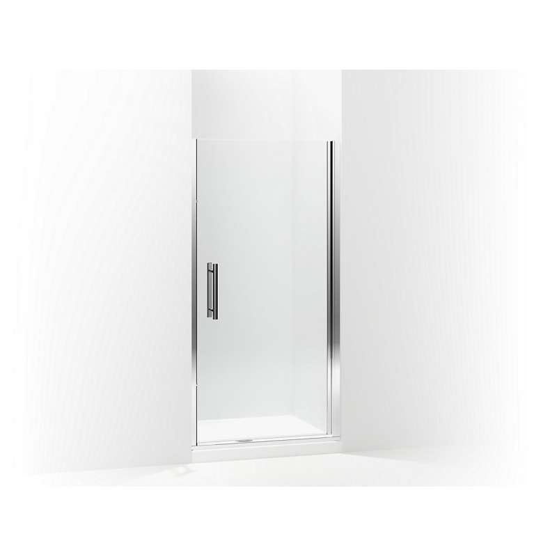 The Finesse Peak frameless swinging door offers minimal metal framing around the glass to showcase the bathing space. The headerless design allows for easy entry.
