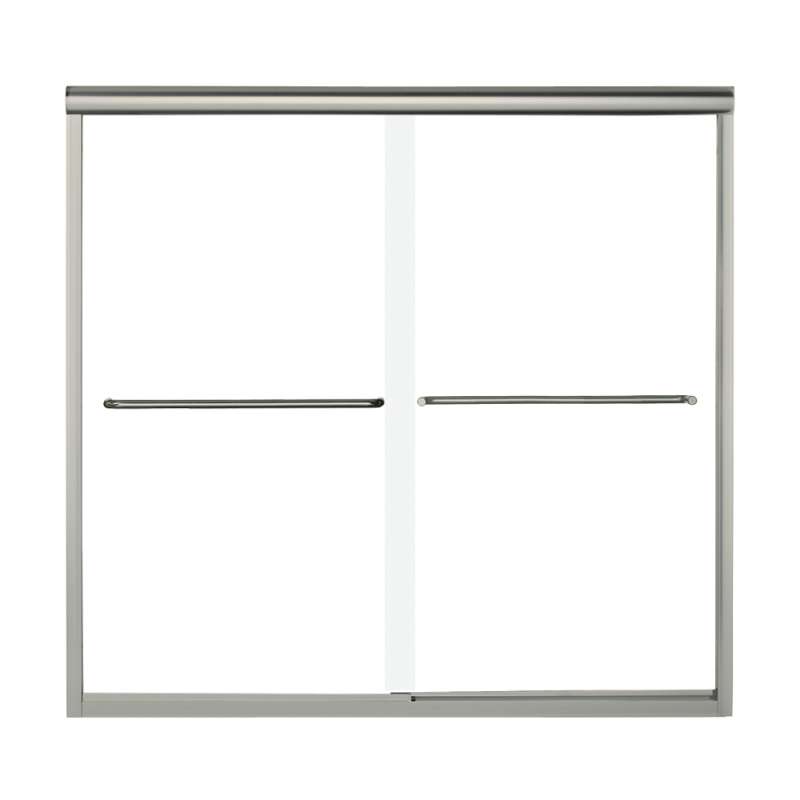 - Brushed nickel finish frameless bathtub door creates a sleek, shiny look