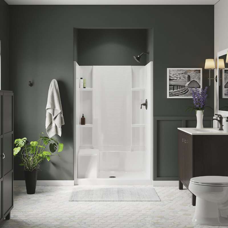 Add comfort and safety to your bathroom with a Sterling Accord seated shower kit. Shower kit features a removable 12-in wide seat that can be positioned on the right or left as well as ample storage. Built of solid Vikrell for material strength, durability and lasting beauty, it has a high-gloss finish that