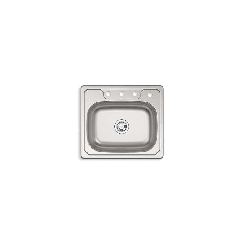 - Made from 20-gauge stainless steel with a satin deck finish and luster bowl finish