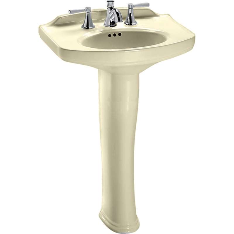 Toto Faucet Center Pedestal Lavatory is transitional in design, this pedestal lavatory features a deeply generous basin and rear overflow. Universal height.
