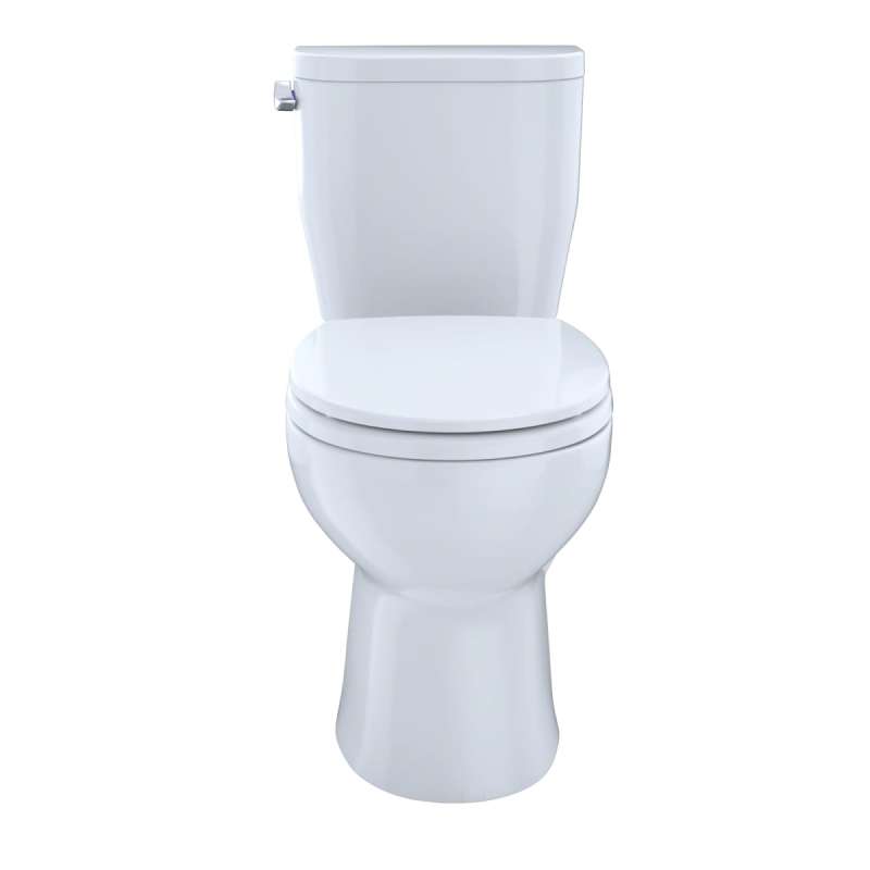 - Close coupled round front bowl and tank set, less toilet seat