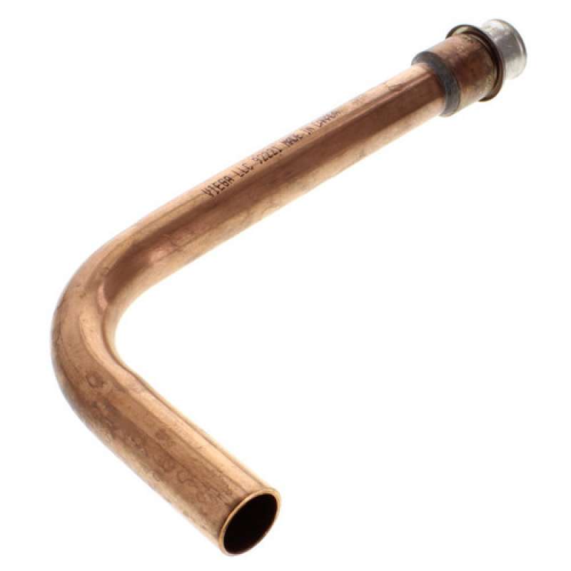 Viega PEX press tub elbow 90 Degrees (Zero lead features). Brazed copper, press connection, male copper tube size.